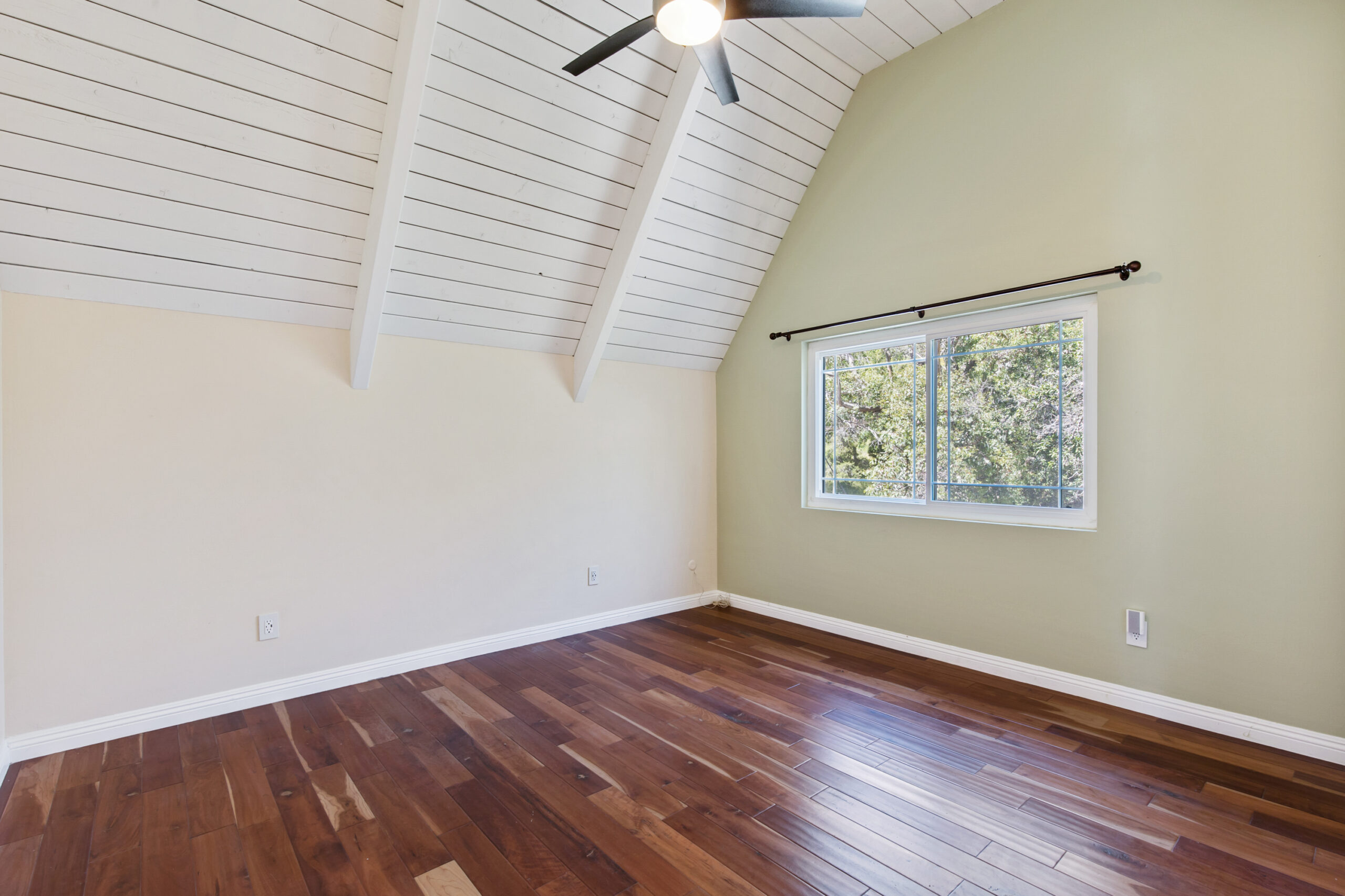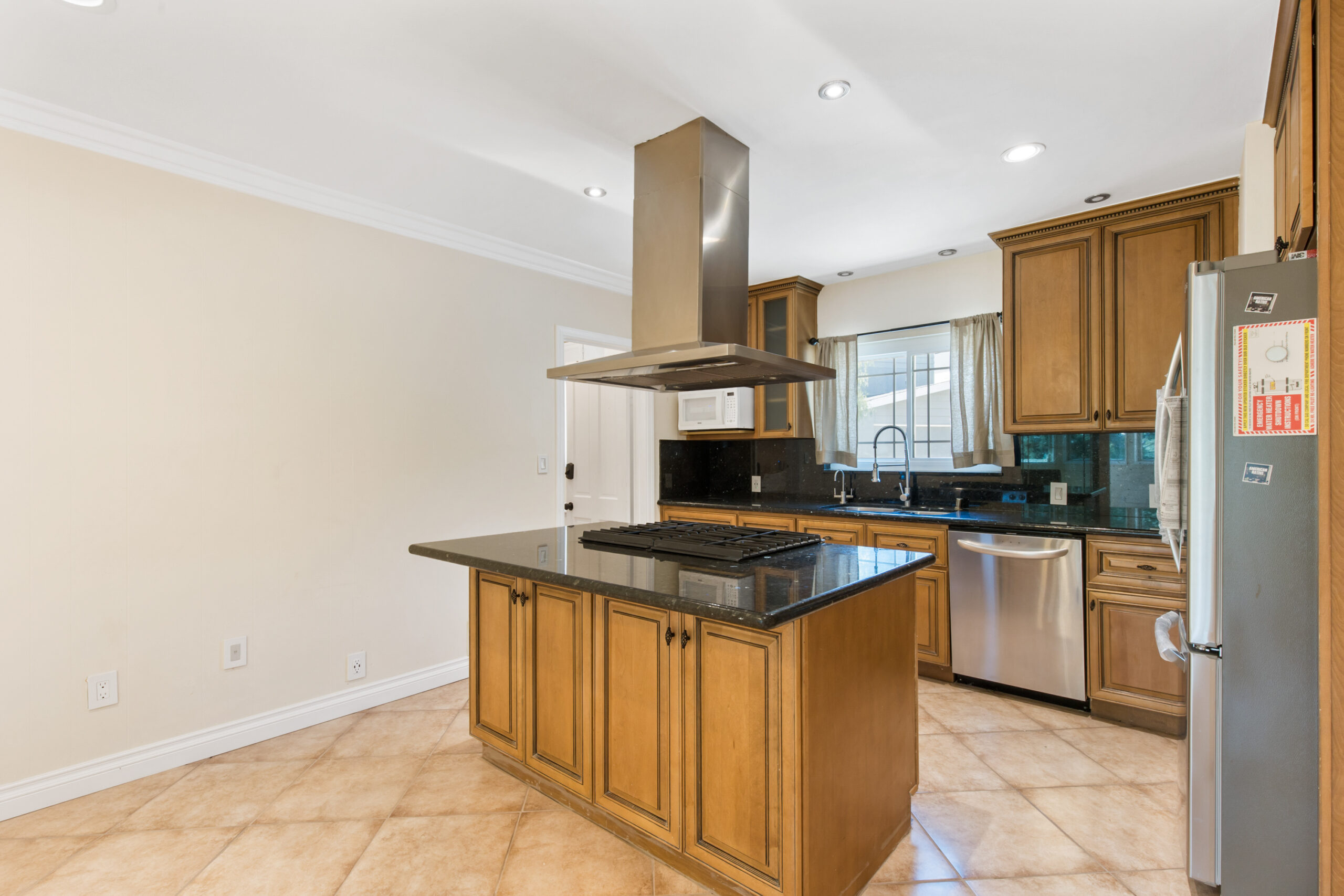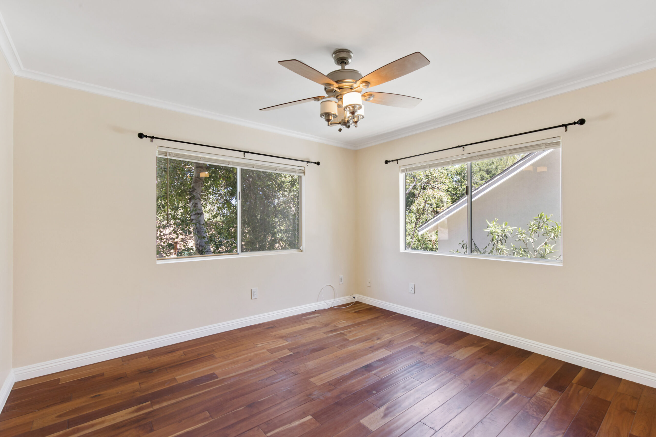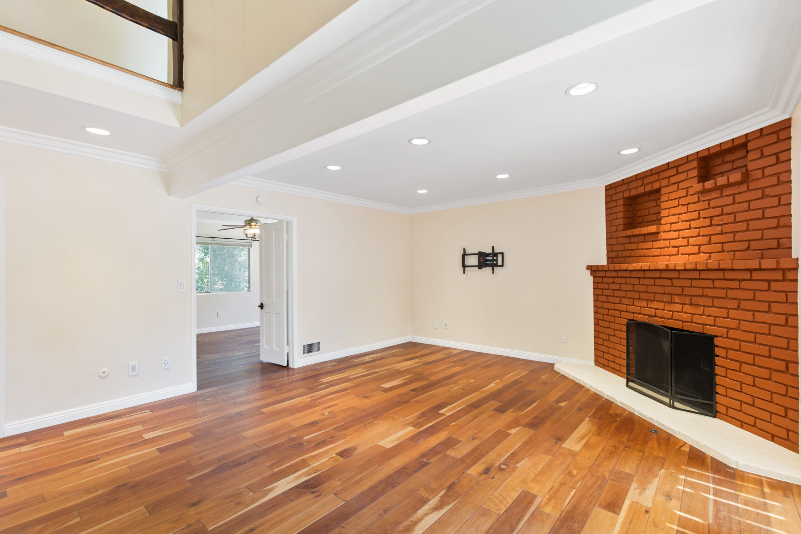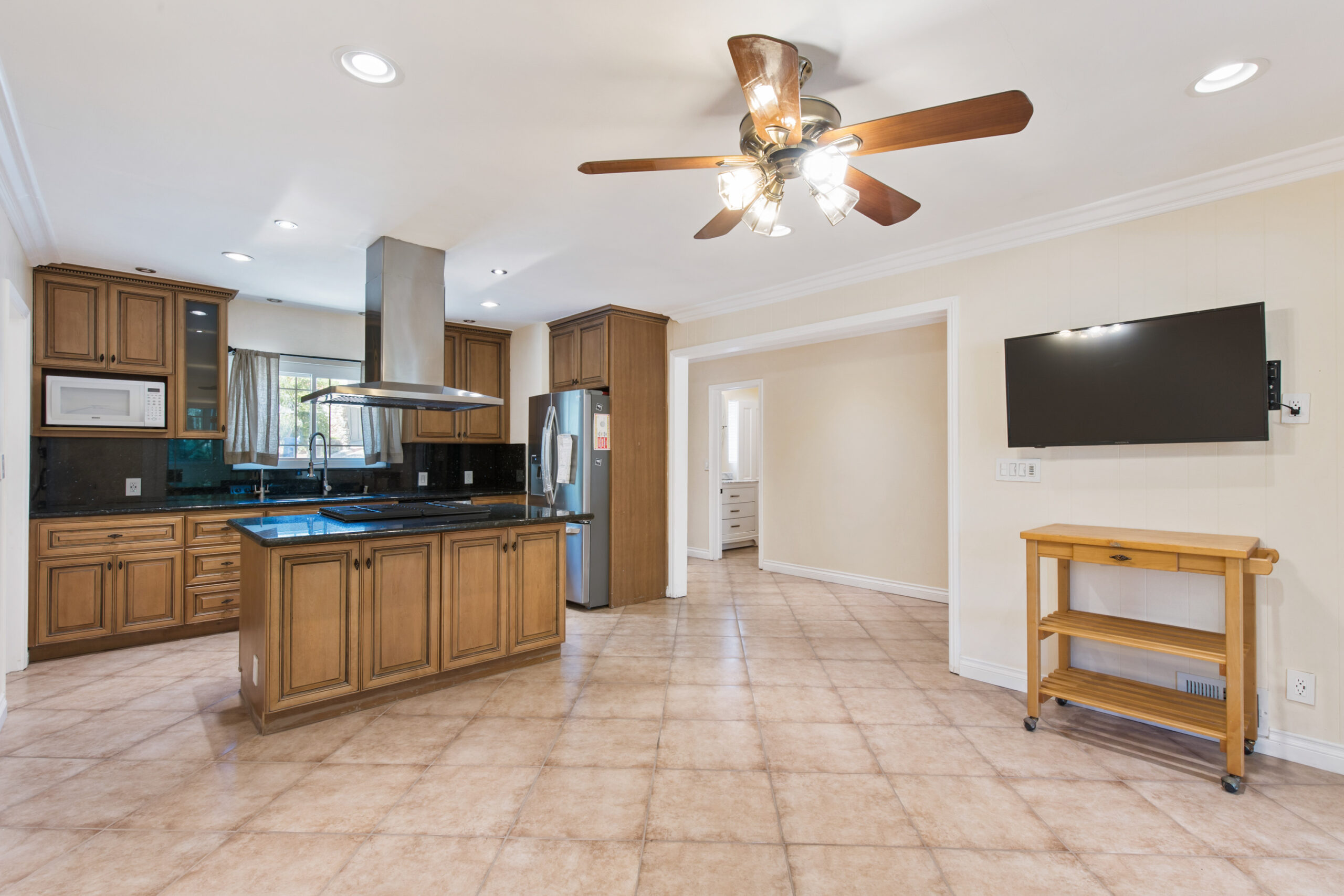 Charming storybook chalet with beautiful mountain views in peaceful Woodland Hills. Traditional post and beam construction w/ contemporary flair, character and charm. Light, bright, airy, with a split-level design and open floor plan. 4 BR/2 BA with hardwood floors & crown moldings. 2 beds up and 2 beds down. Updated kitchen has custom cabinets, granite counters, stainless appliances, recessed lighting and an island along with a KitchenAid triple-tier burner and convection oven. Dining room opens to spacious sunroom with high ceiling & nature views. Step down living room is warm and inviting with a decorative fireplace, and opens to a patio. Bathrooms have been updated w/ new vanities. Upstairs bedrooms and bathroom have vaulted ceilings and ceiling fans. Non-covered parking spots for two cars. Easy street parking with no street sweeping restriction. Other amenities include Double-glazed windows, USB-A & USB-C outlets in every room, Smart Ecobee Thermostat, Hillside views from master bedroom balcony, 24/7 professional security monitoring – RING, Brand new LG french door stainless steel refrigerator, Instant Hot on-demand filtered water, One 43″ Smart FireTVDishwasher, garbage disposal, refrigerator, washer/dryer included. Great location, close to the 101 FWY, PCH, Topanga State Park hiking trails, Calabasas, Ventura Blvd, shops & restaurants! The Woodland Hills Country Club is only one mile away. Home is in the affluent area of Girard Tract neighborhood.