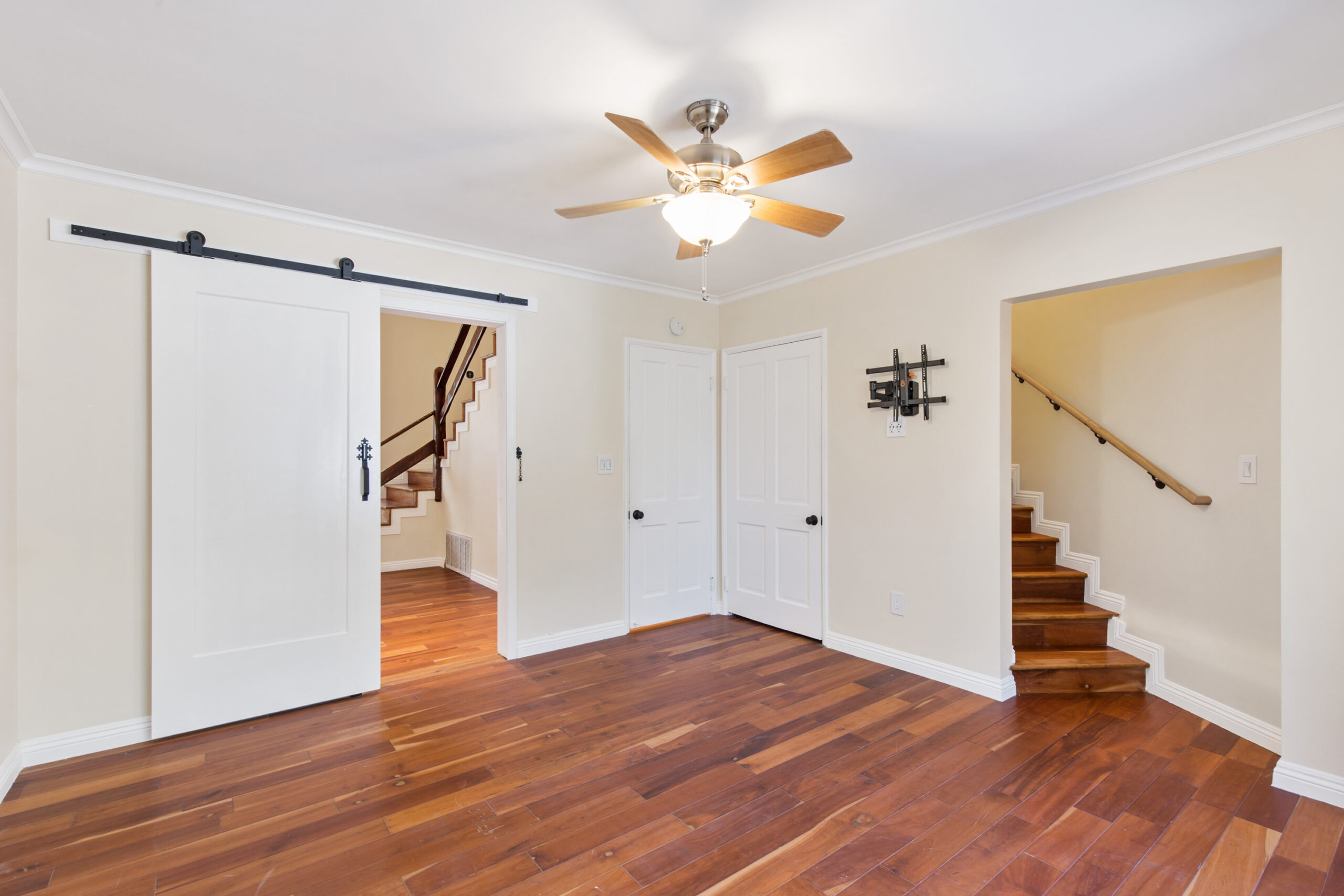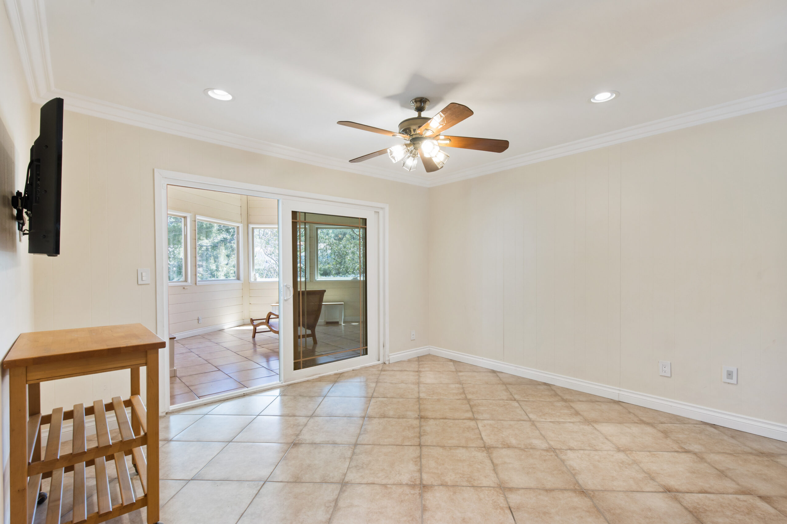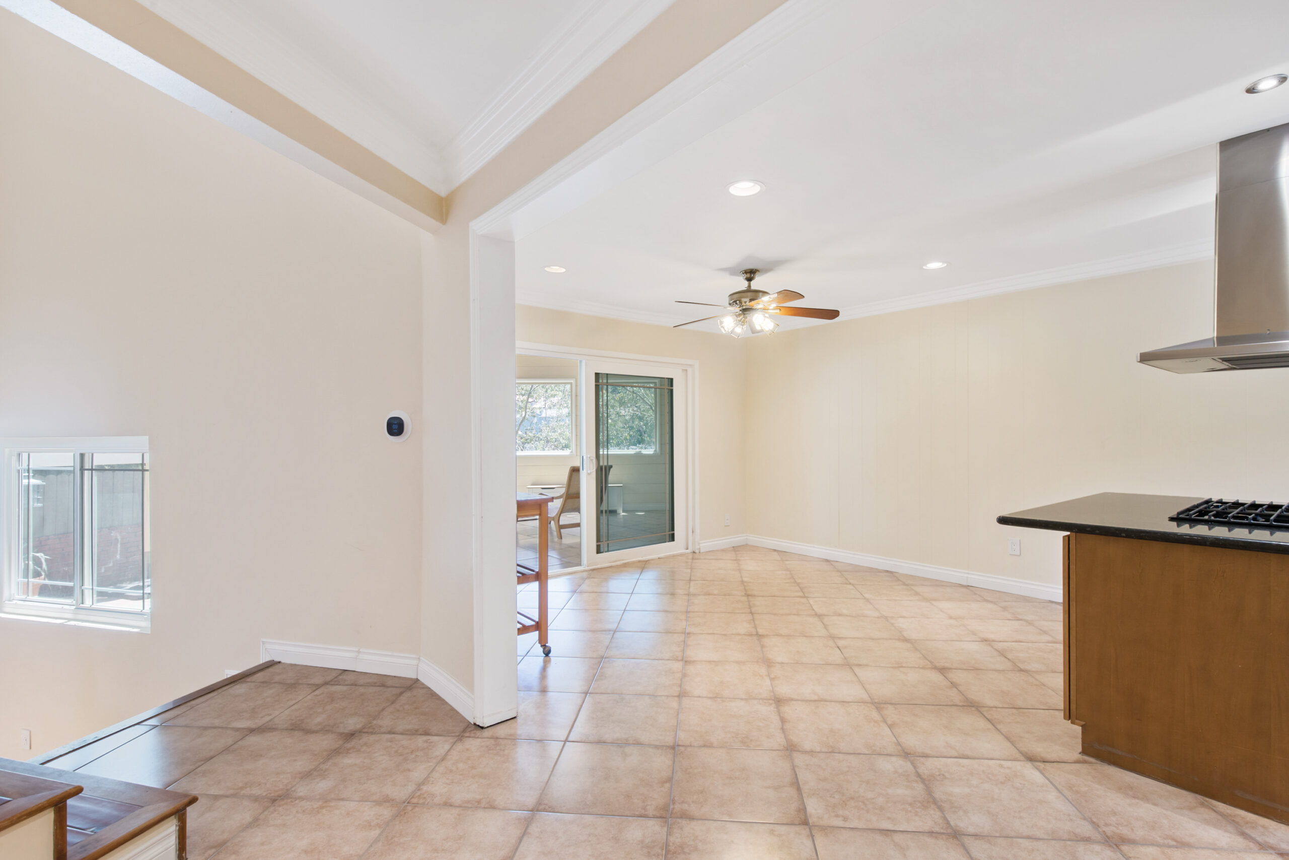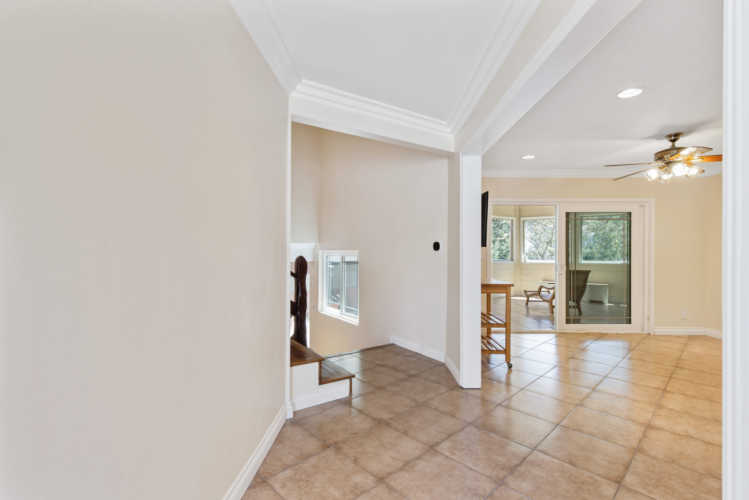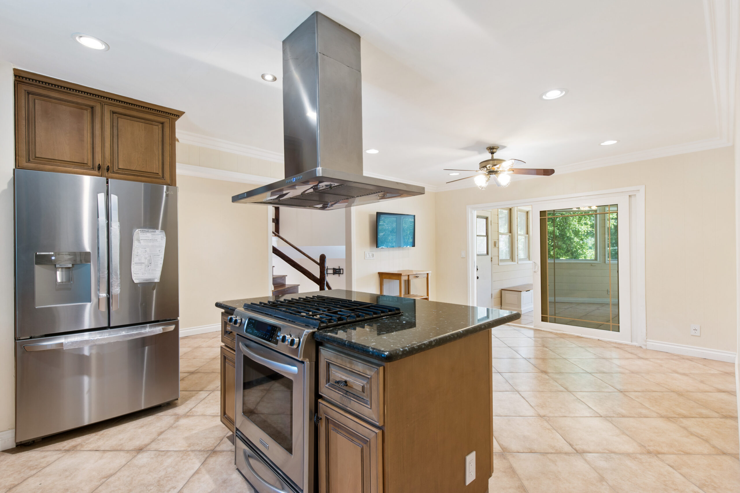 Charming storybook chalet with beautiful mountain views in peaceful Woodland Hills. Traditional post and beam construction w/ contemporary flair, character and charm. Light, bright, airy, with a split-level design and open floor plan. 4 BR/2 BA with hardwood floors & crown moldings. 2 beds up and 2 beds down. Updated kitchen has custom cabinets, granite counters, stainless appliances, recessed lighting and an island along with a KitchenAid triple-tier burner and convection oven. Dining room opens to spacious sunroom with high ceiling & nature views. Step down living room is warm and inviting with a decorative fireplace, and opens to a patio. Bathrooms have been updated w/ new vanities. Upstairs bedrooms and bathroom have vaulted ceilings and ceiling fans. Non-covered parking spots for two cars. Easy street parking with no street sweeping restriction. Other amenities include Double-glazed windows, USB-A & USB-C outlets in every room, Smart Ecobee Thermostat, Hillside views from master bedroom balcony, 24/7 professional security monitoring – RING, Brand new LG french door stainless steel refrigerator, Instant Hot on-demand filtered water, One 43″ Smart FireTVDishwasher, garbage disposal, refrigerator, washer/dryer included. Great location, close to the 101 FWY, PCH, Topanga State Park hiking trails, Calabasas, Ventura Blvd, shops & restaurants! The Woodland Hills Country Club is only one mile away. Home is in the affluent area of Girard Tract neighborhood.