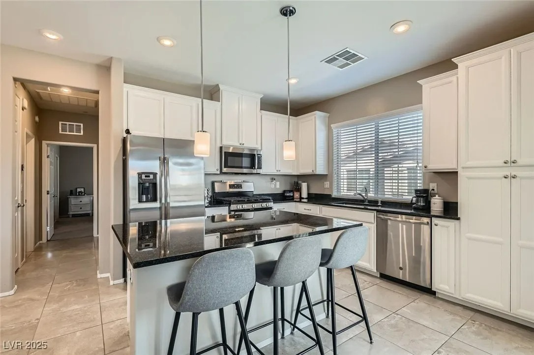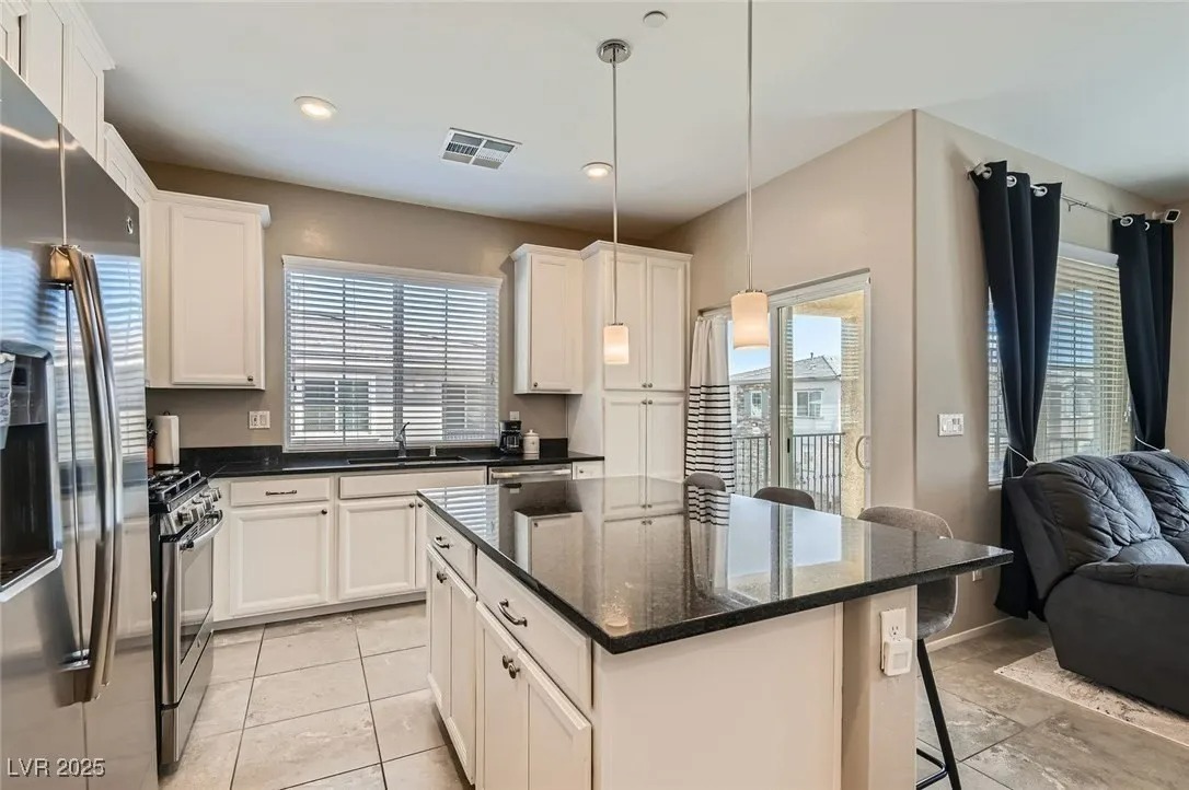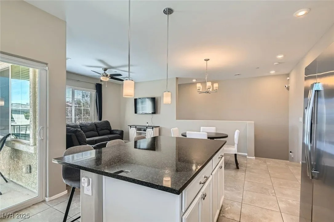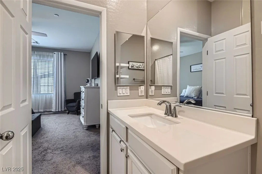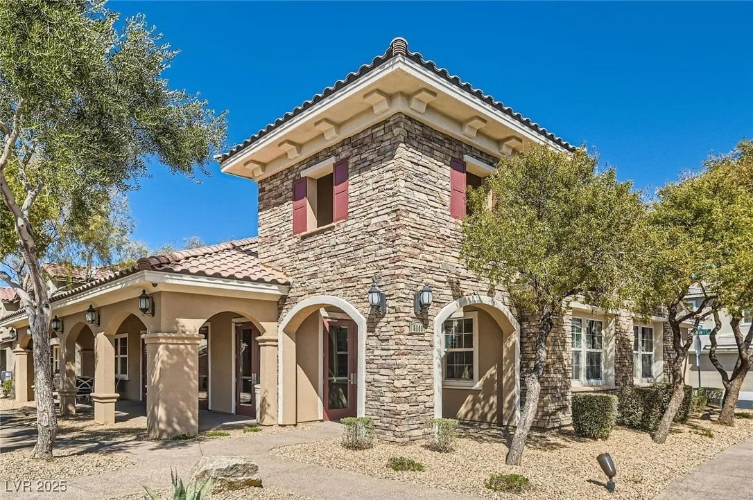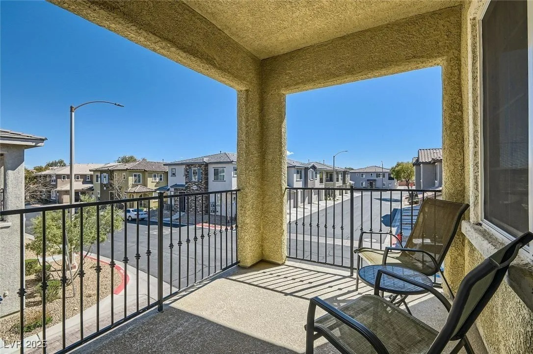 This 1,089 sq. ft. townhome features 2 bedrooms and 2 full baths, filled with natural light from its desirable corner location. The open layout highlights a modern kitchen with white cabinets, granite countertops, and pendant lighting over the breakfast bar. Enjoy outdoor living on the spacious balcony with convenient guest parking nearby. Designed by Lennar as a Smart Home, it includes advanced features such as a Smart Lock, Ring Video Doorbell, WiFi Thermostat, Legrand On-Q 42″ RF-transparent structured media enclosure, Leviton surge-protective receptacles, CAT 6A wiring, and a Ruckus Wireless ZoneFlex R510 access point—providing seamless connectivity, security, and convenience. Located in a gated community with resort-style amenities including a clubhouse, fitness center, and pool, this home offers modern upgrades in a well-kept neighborhood within the master-planned community of Mountain’s Edge.